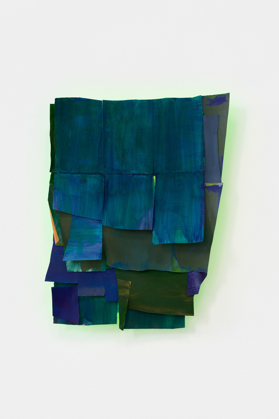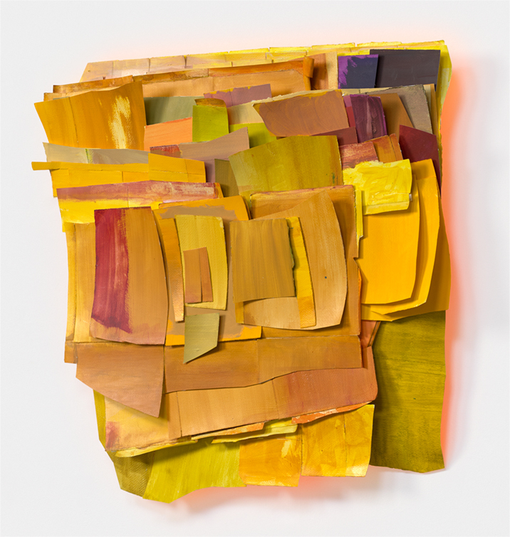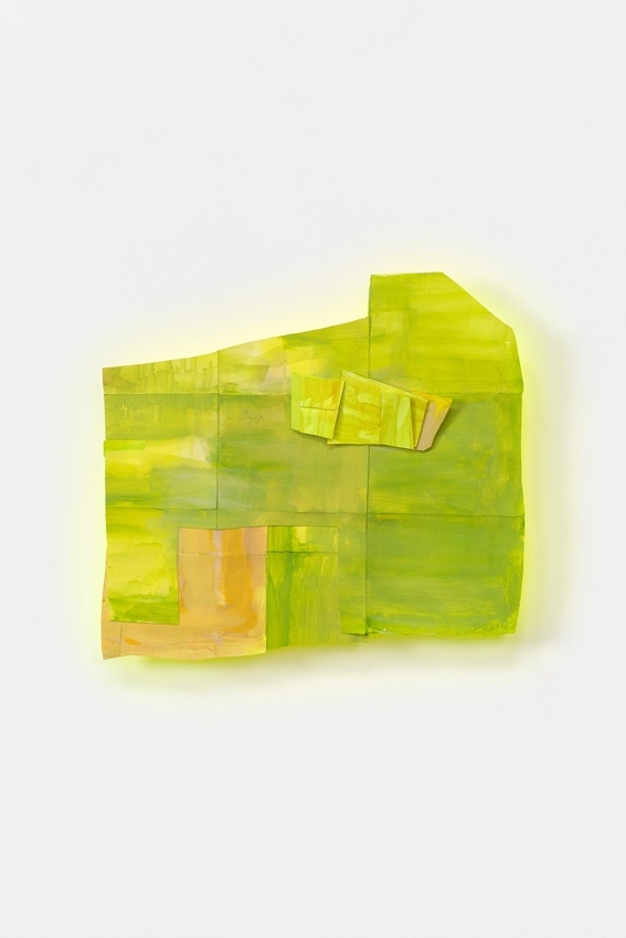 acrylic + ink + linen tape + paper + reflected light from painted reverse side
