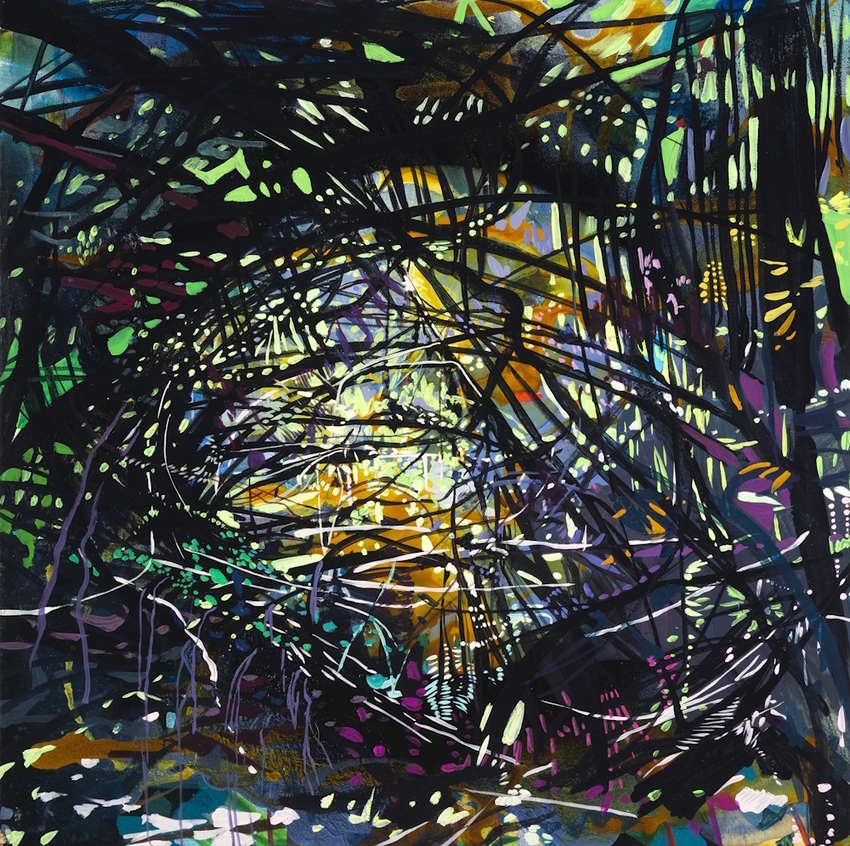 projections of original animated collaboration between my paintings and computer program, colored lighting, mixed reality headsets with walkable, animated environments developed from original drawings and paintings, original sound composition