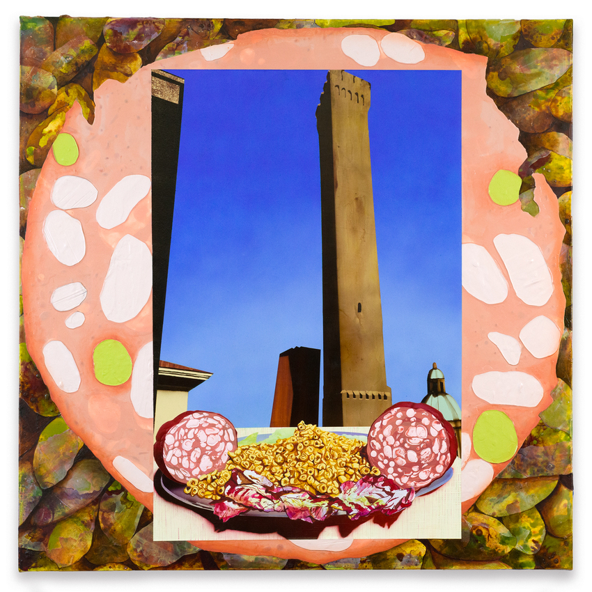 acrylic, acrylic gouache, oil, cellulose, pumice gel, Muscovite mica, iron glimmer, mother of pearl, peridot, Yupo collage on canvas