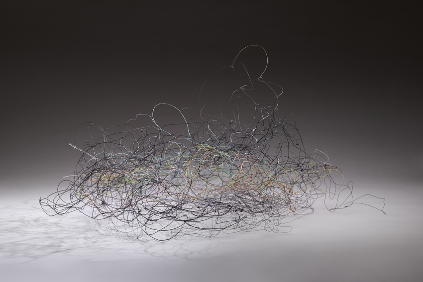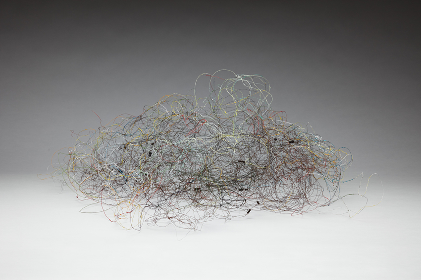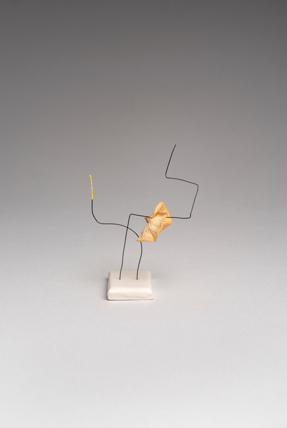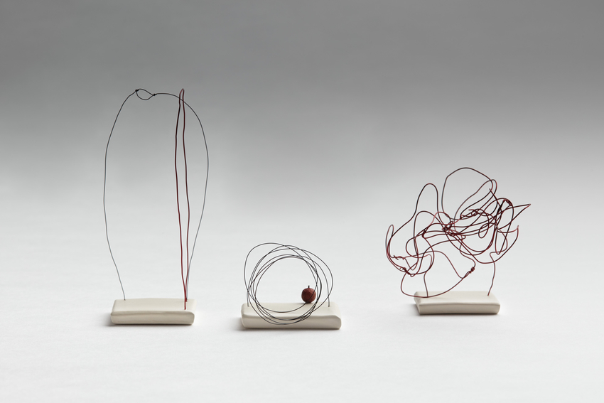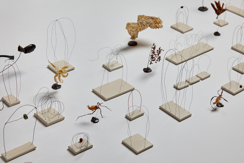wire, dried plant material, and clay