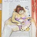 Alcohol inks, acrylic paint pens, markers, and collage on a page from a very large edition of James Joyce's Ulysses.