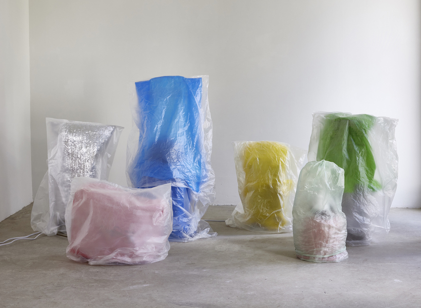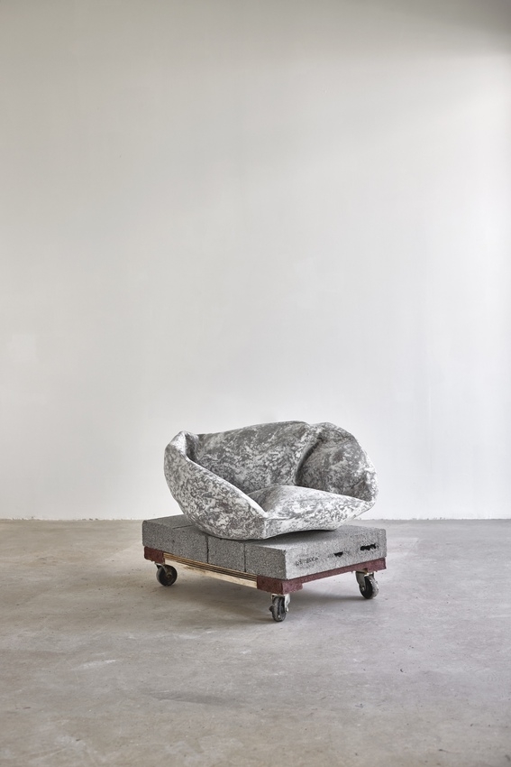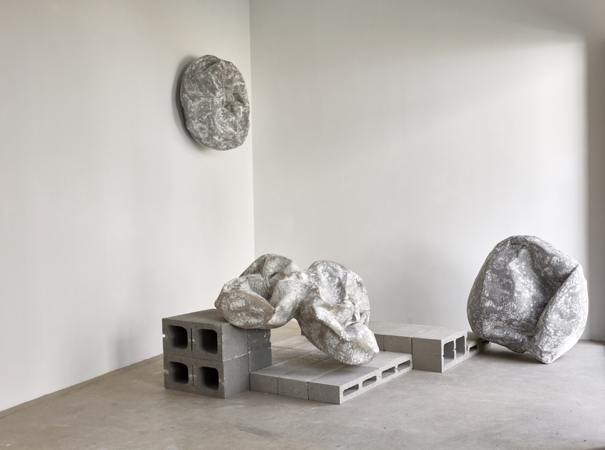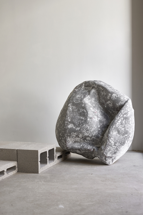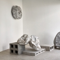 Aqua resin, paper mache, flashe paint, cinder blocks
