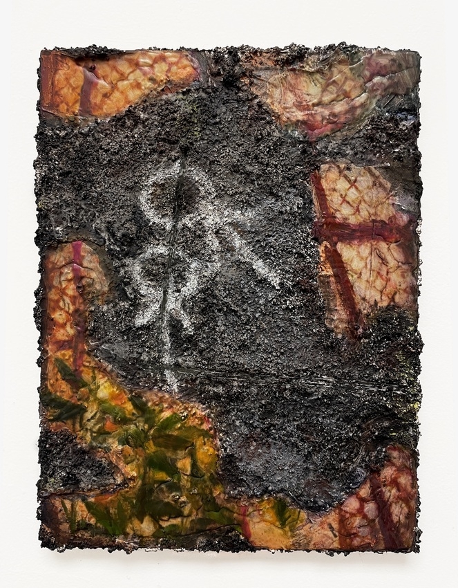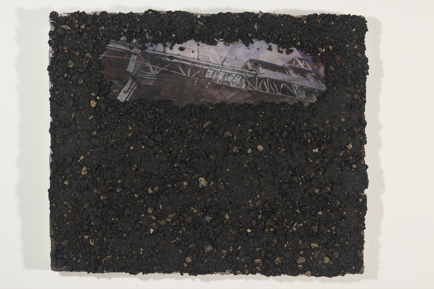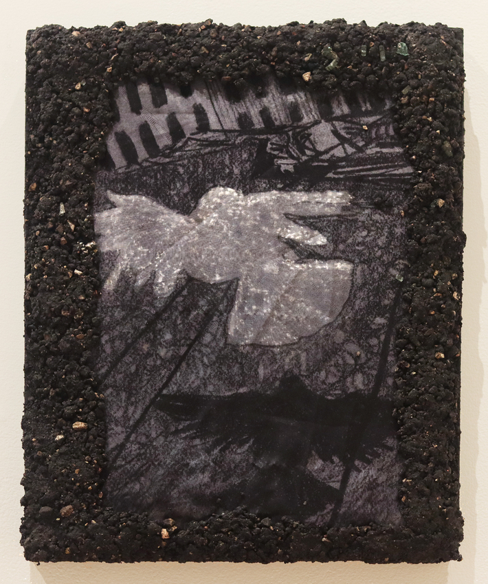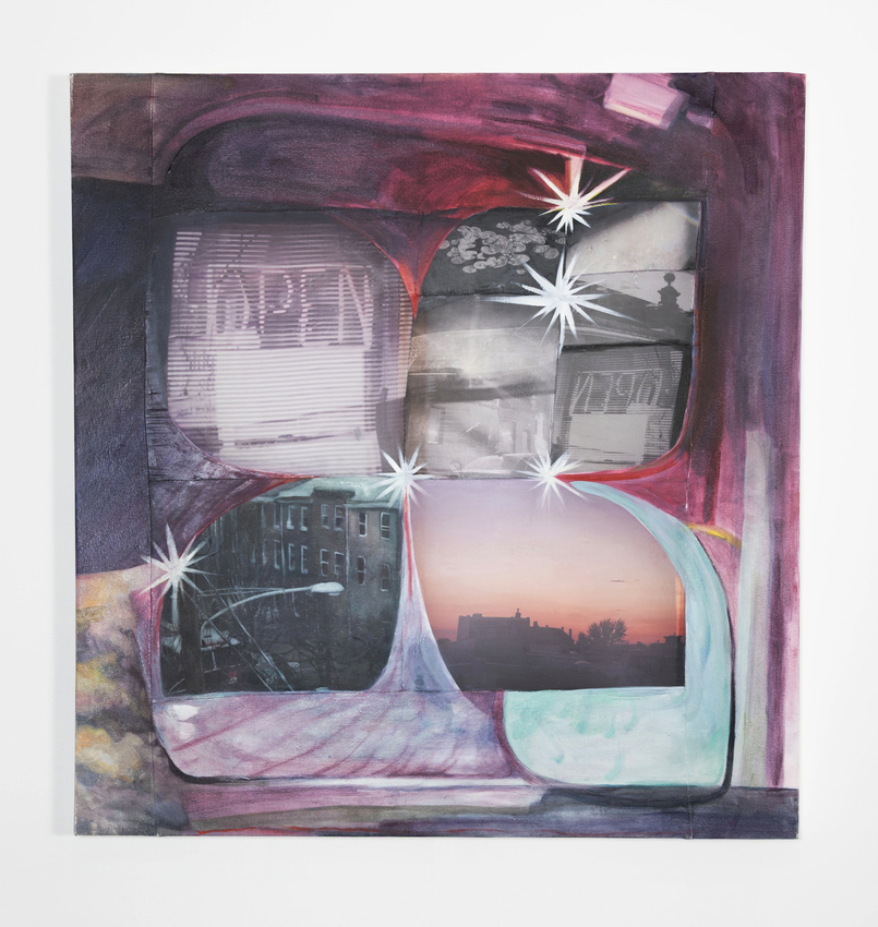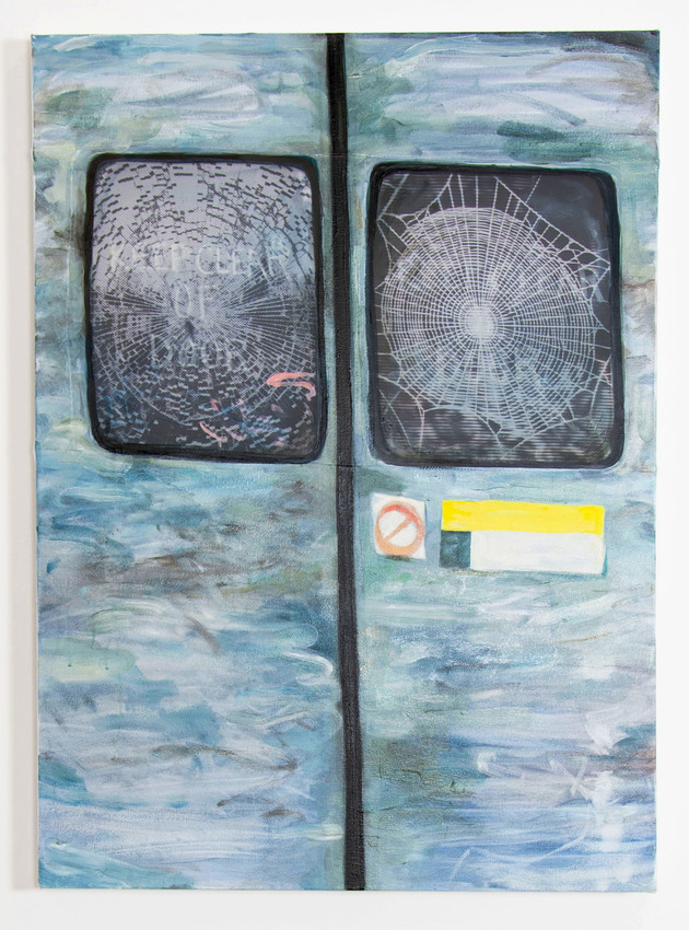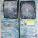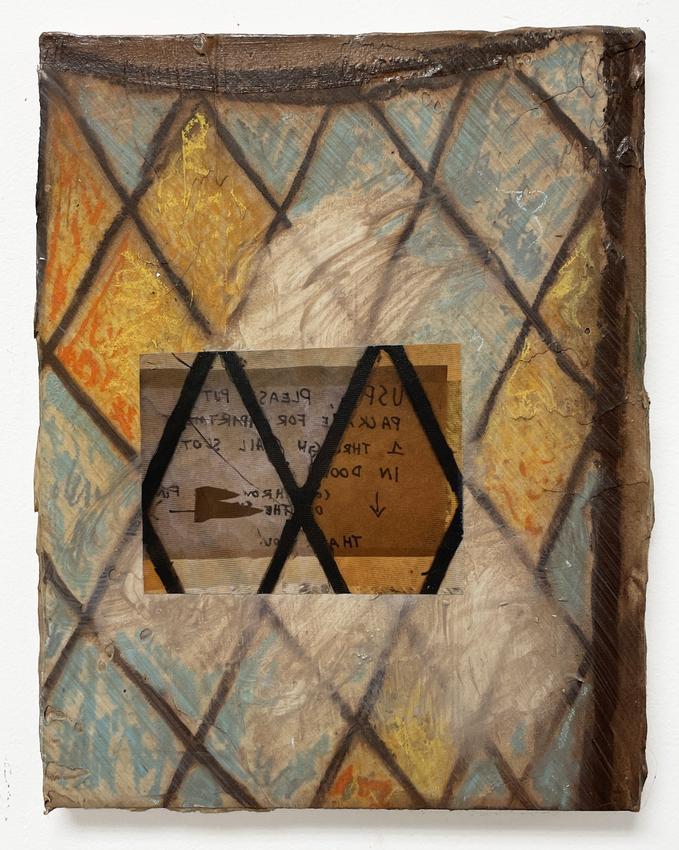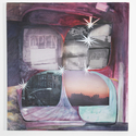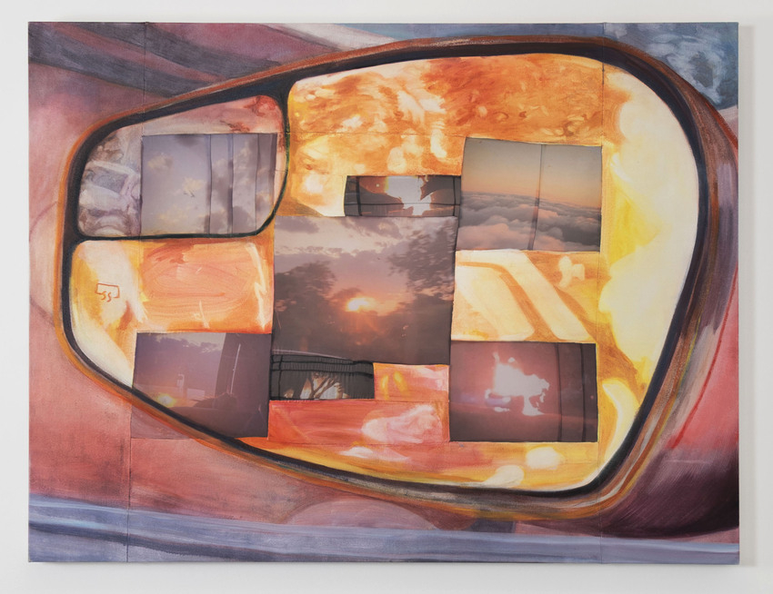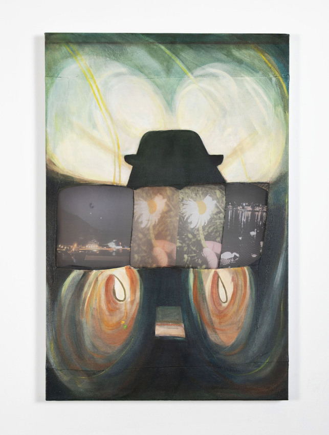 Oil on canvas with digitally printed silk