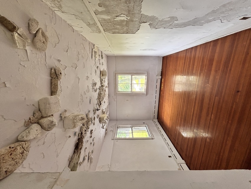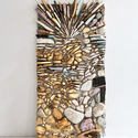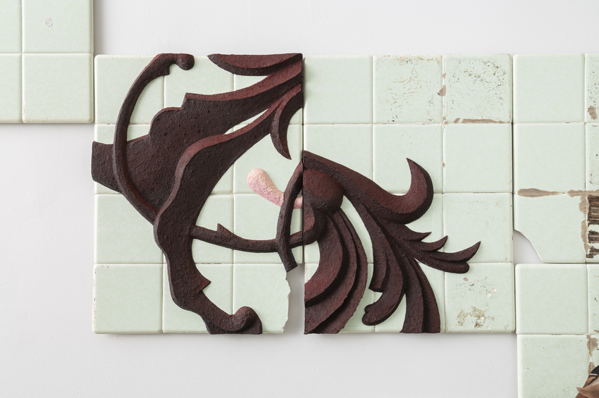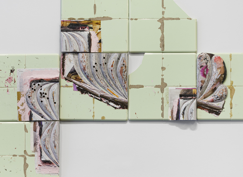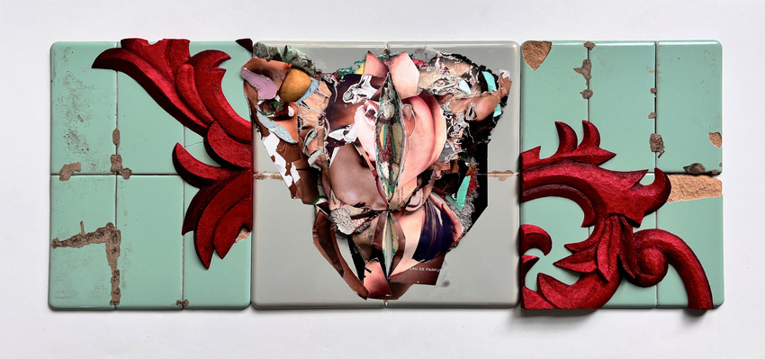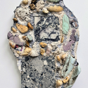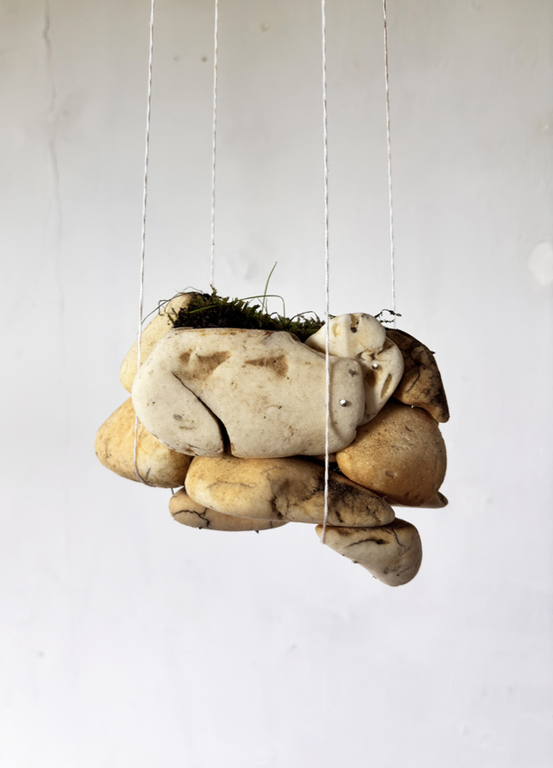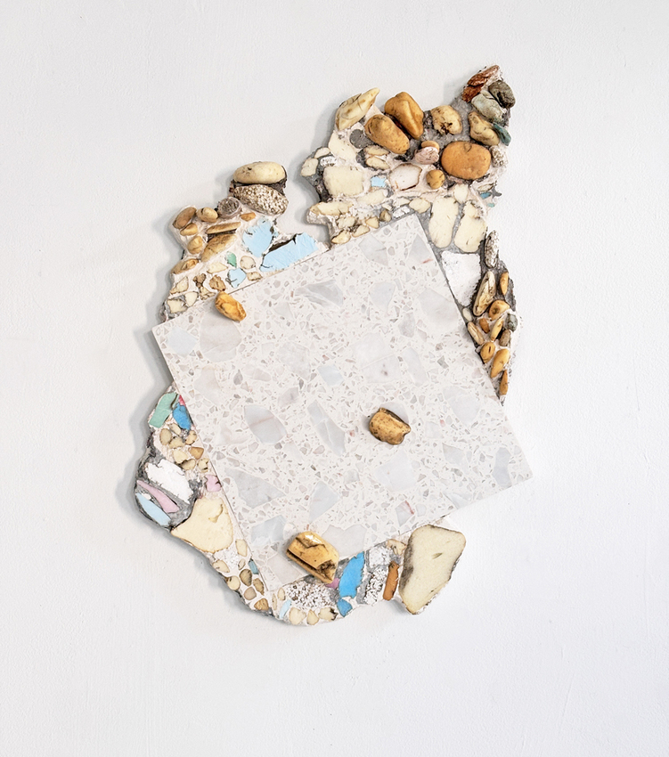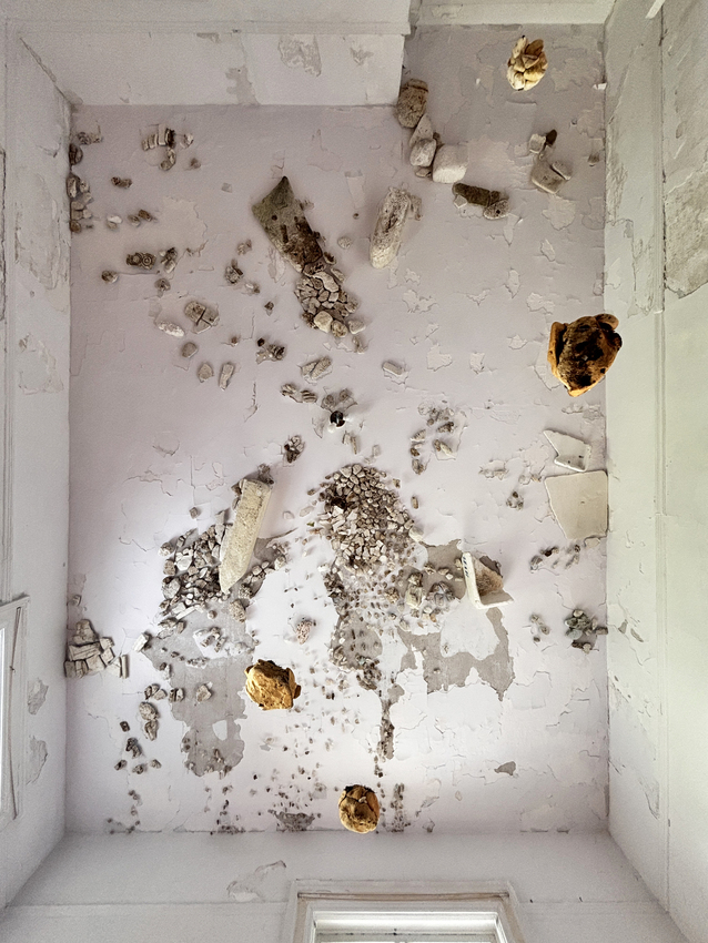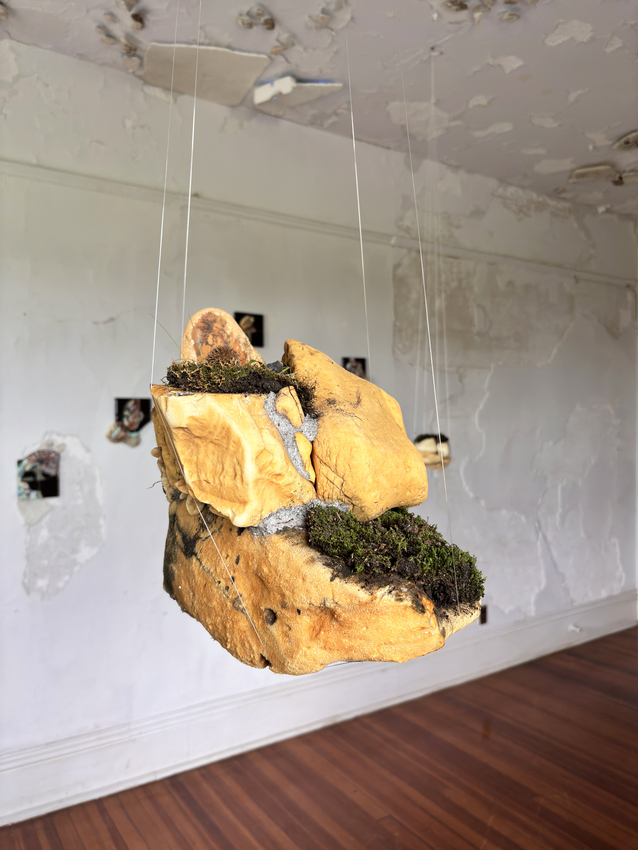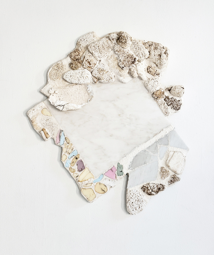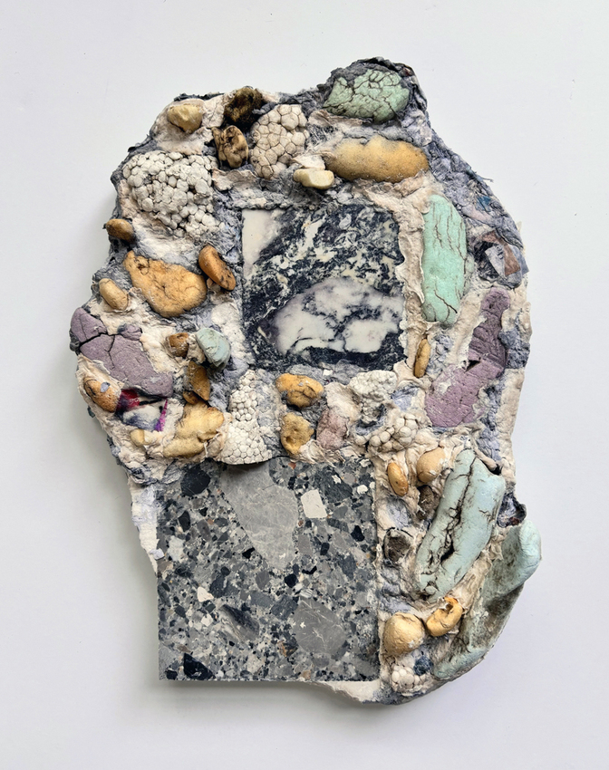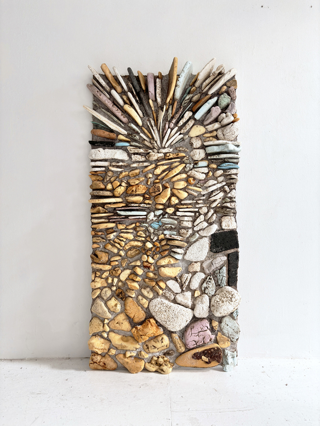 Waste expanded polystyrene collected from the Atlantic ocean, paper, acrylic paint, and pins