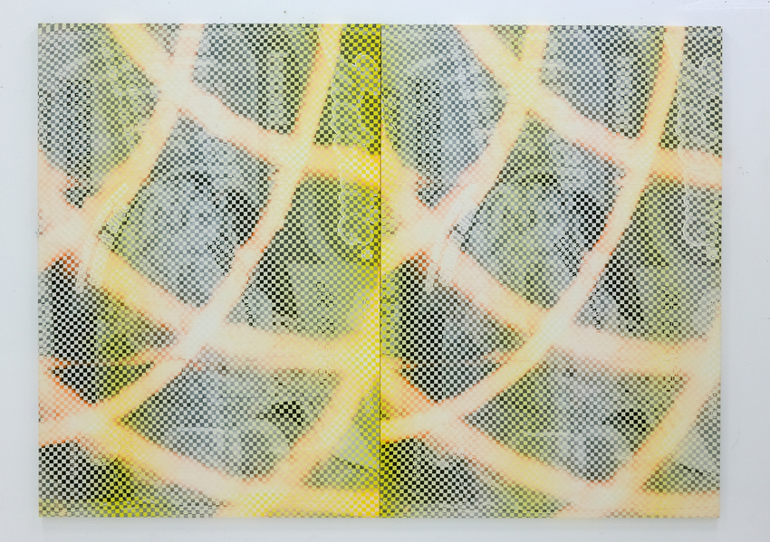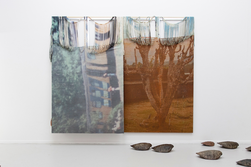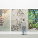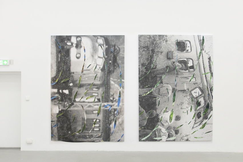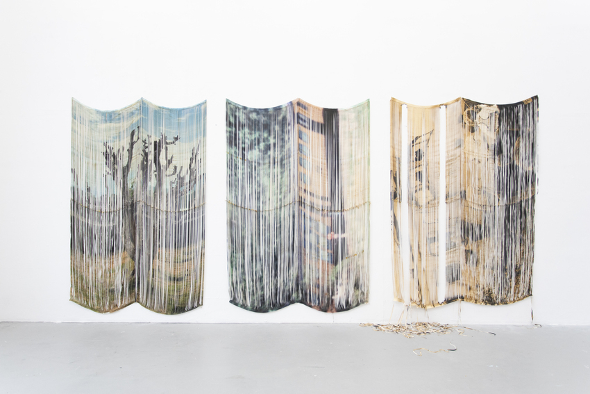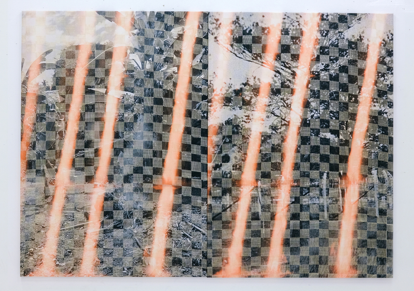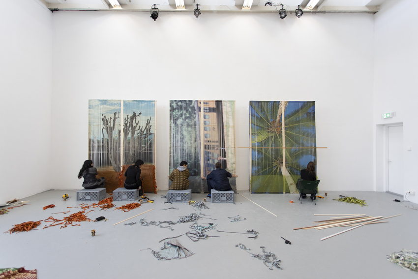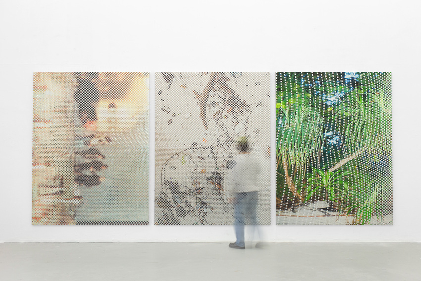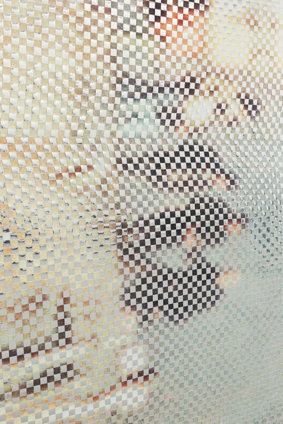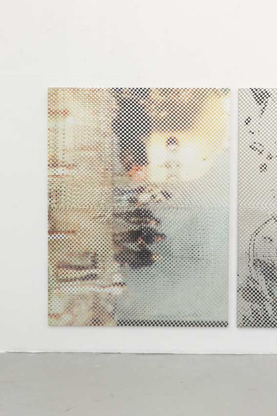 mirror foil, inkjet on canvas, aluminium frame, collectively woven