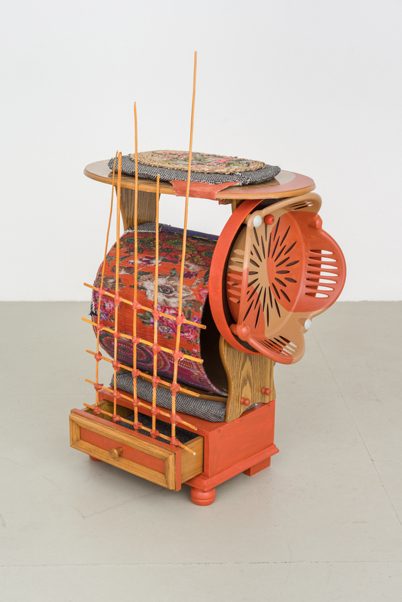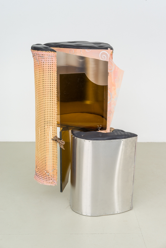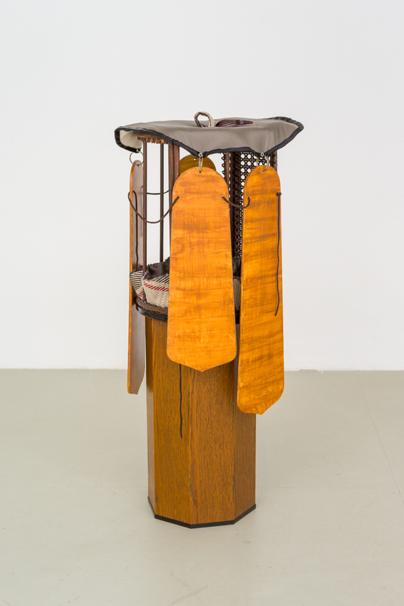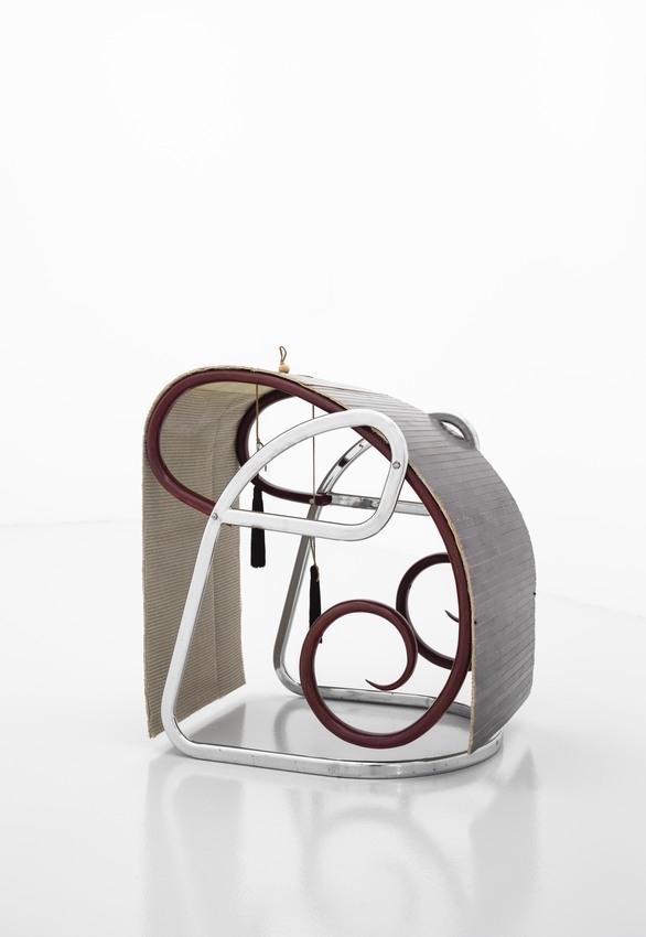 wood, varnish, steel, fabric, plastic