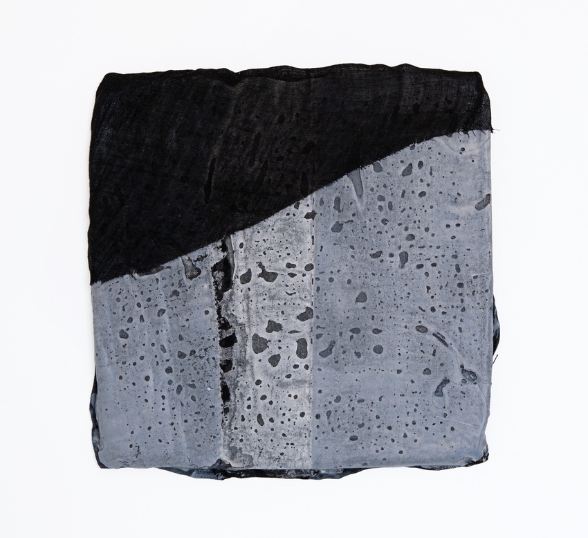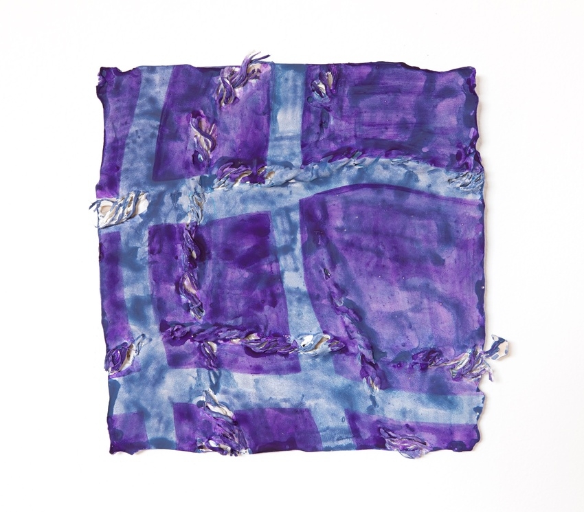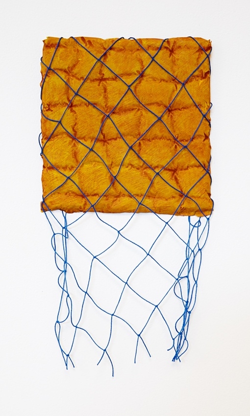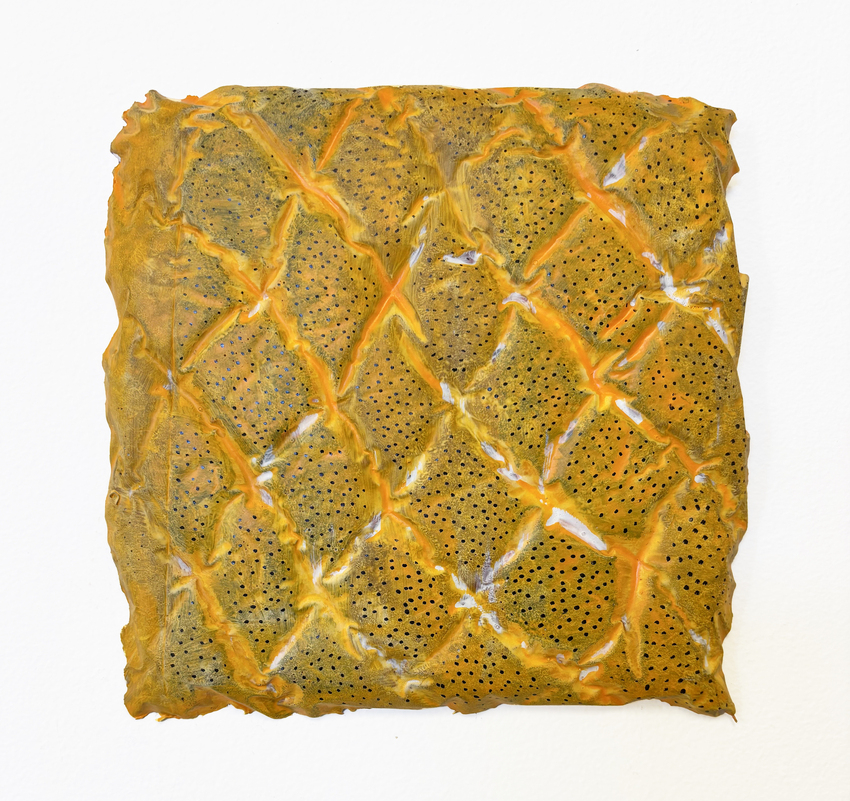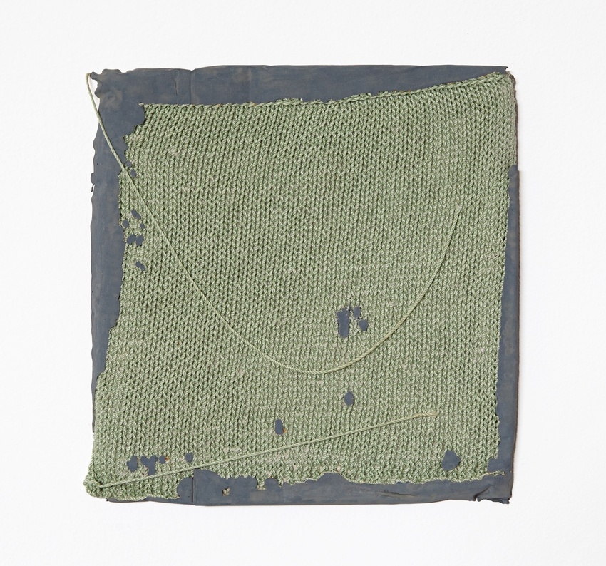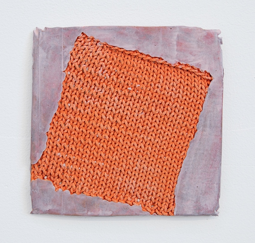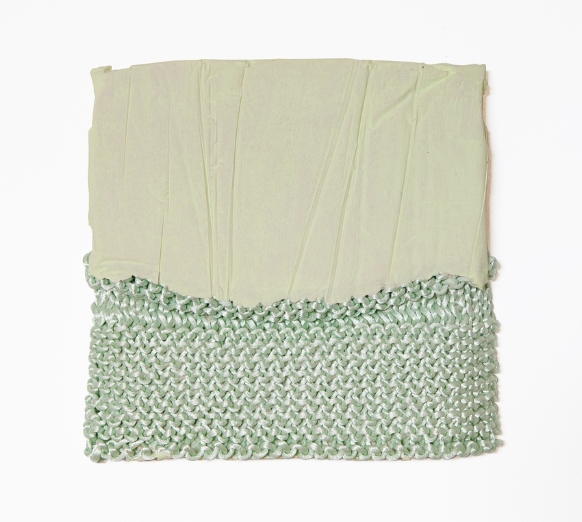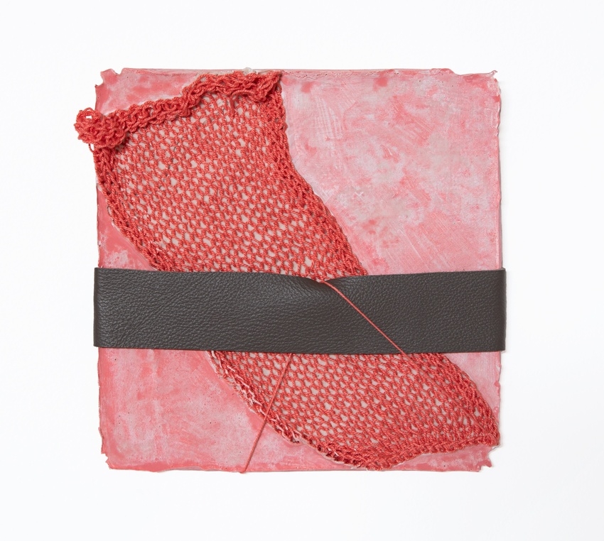 Aqua-Resin, hand-knit textile, leather, acrylic, Flashe