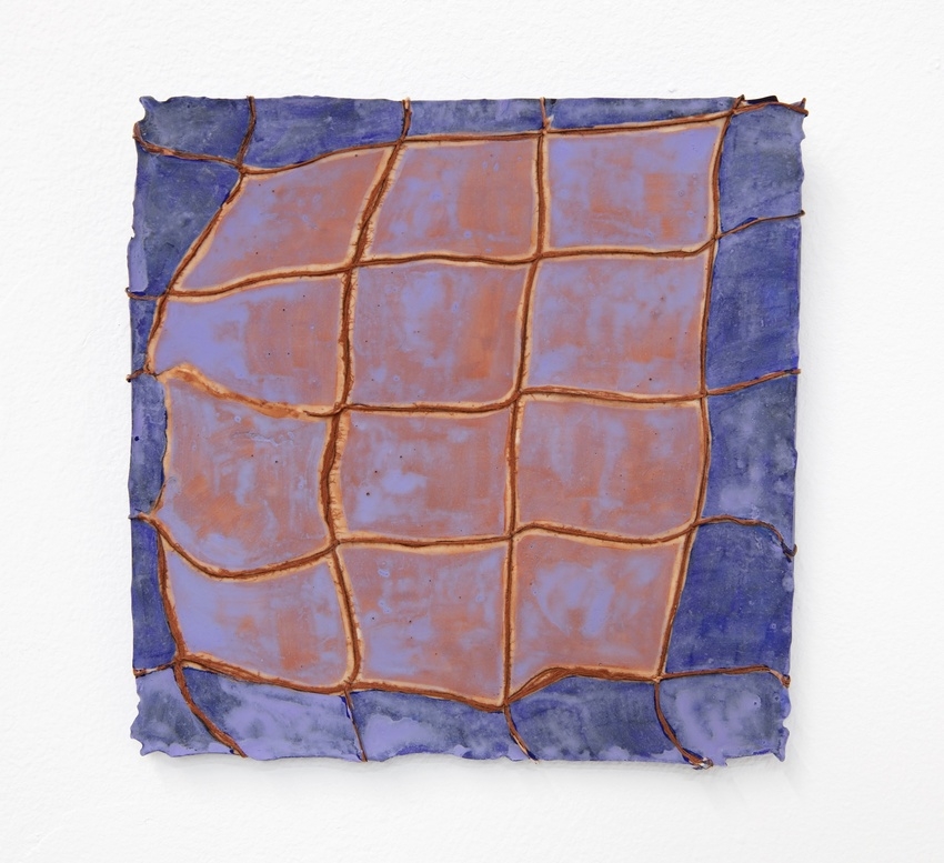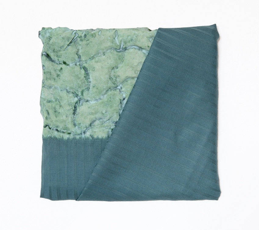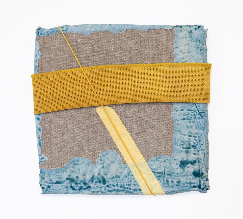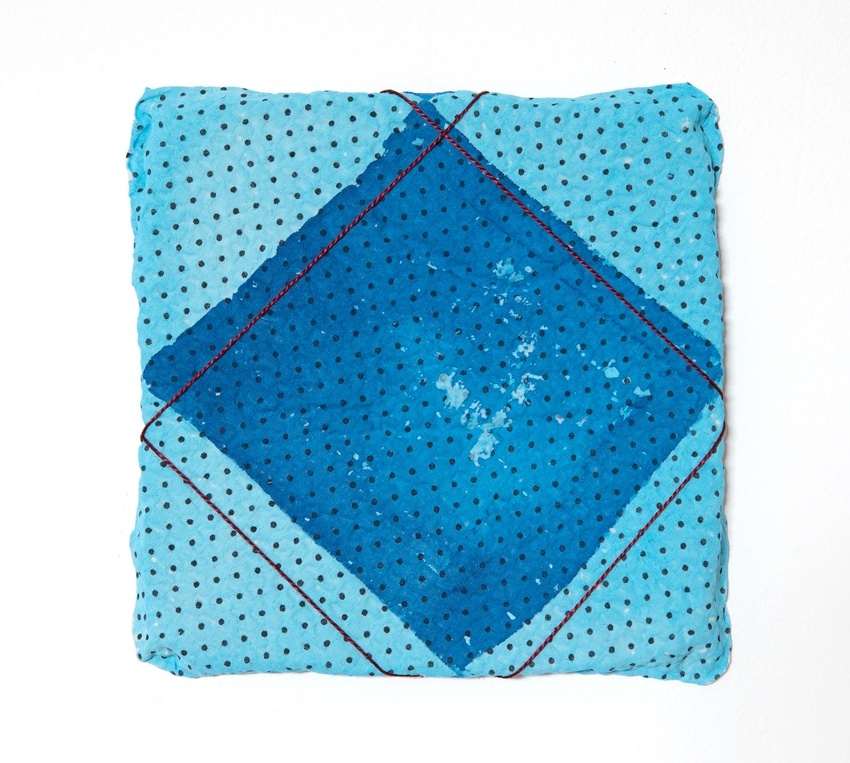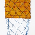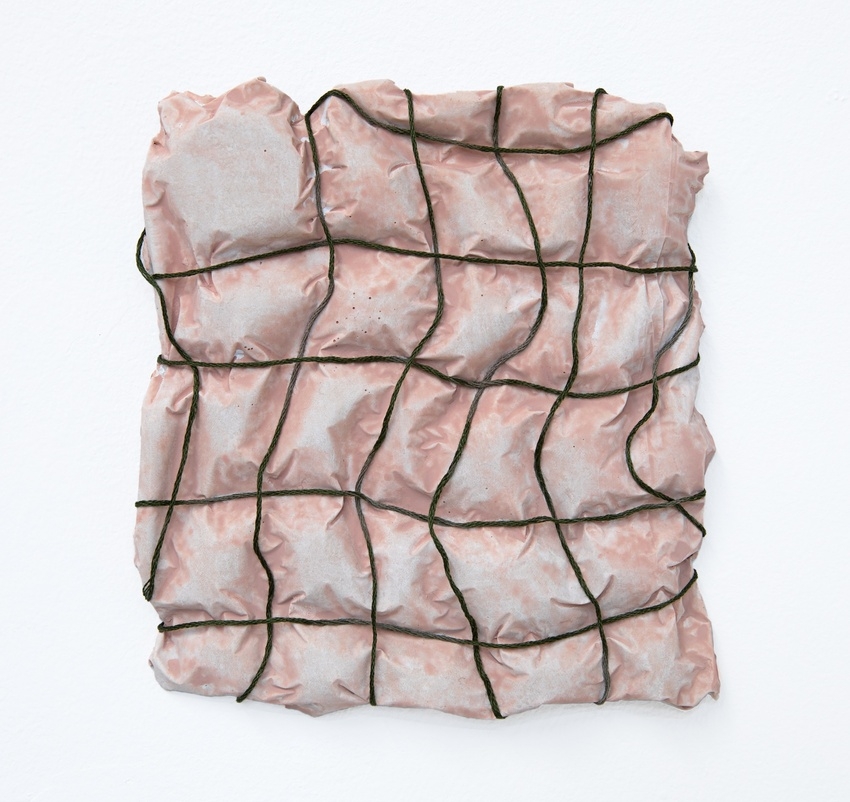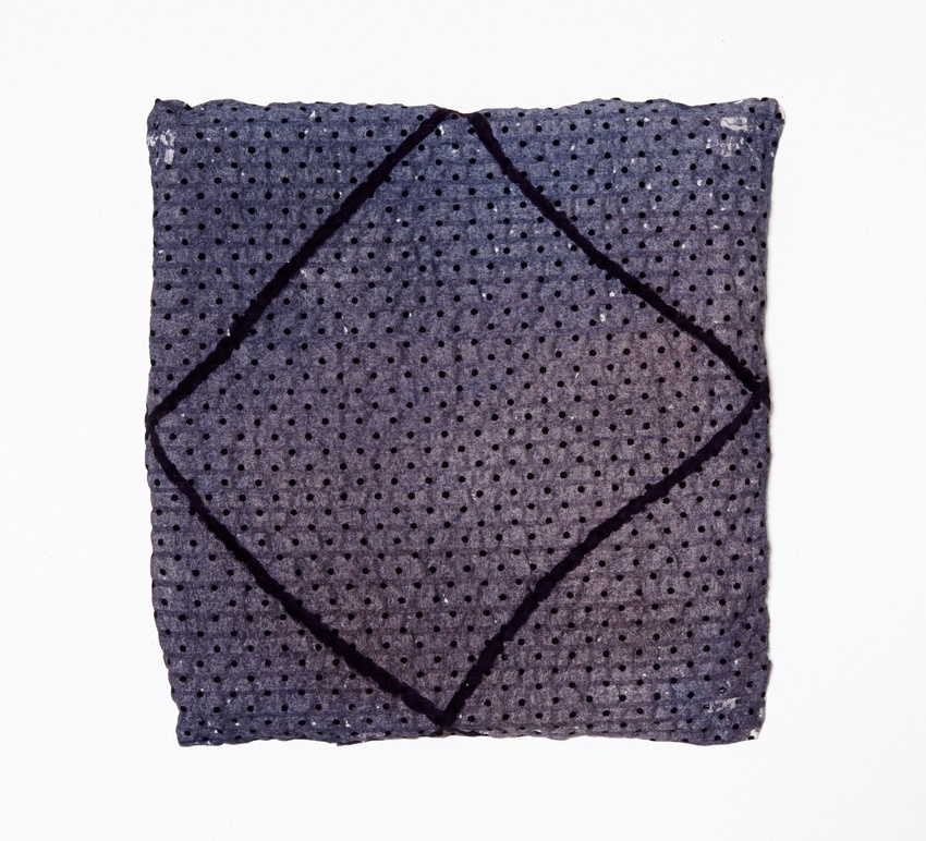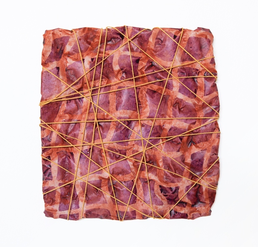 Aqua-Resin, hand-knit textile, leather, acrylic, Flashe